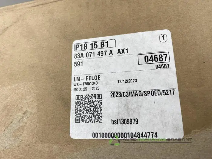 Wheel for Audi Q3? Order directly online and pay securely. The used part platform for both private and business customers. The Wheel for Audi Q3 is now available from our automated warehouse that stores original quality second-hand and new parts. Excellent warranty conditions, fast shipping telephone and online parts from Auto Recycling Brabant. The Wheel parts can be picked up at our parts desk within our extended opening hours or are delivered internationally.