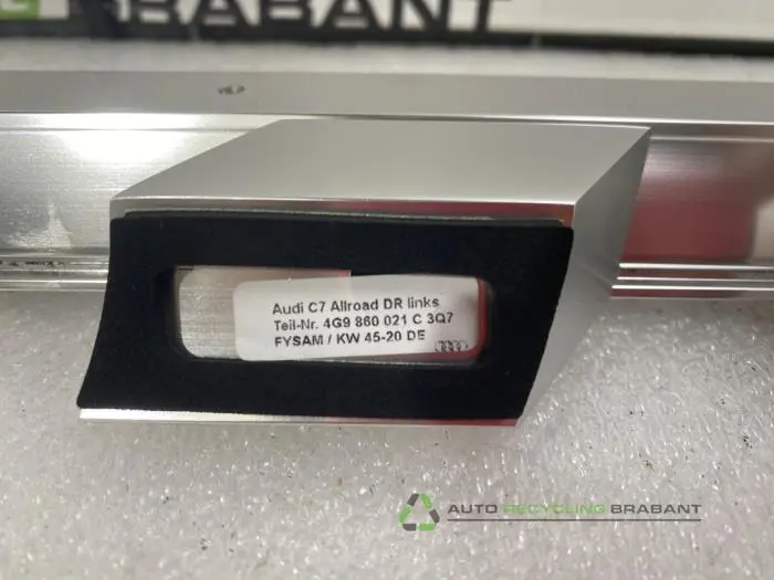 Dakrail links voor Audi A6 nodig? Direct online bestellen en veilig betalen. Het gebruikte onderdelen platform voor zowel particulieren en zakelijke klanten. De Dakrail links voor Audi A6 is nu beschikbaar vanuit ons geautomatiseerd magazijn waarin originele kwaliteit tweedehandse en nieuwe onderdelen zijn opgeslagen. Uitstekende garantievoorwaarden, snelle verzending, telefonische en online onderdelen helpdesk zijn inbegrepen bij de aankoop van een technische of carrosserie auto onderdelen bij Auto Recycling Brabant. De Dakrail links onderdelen kunt u binnen onze ruime openingstijden ophalen bij de auto onderdelen afhaal balie of worden internationaal uitgeleverd.