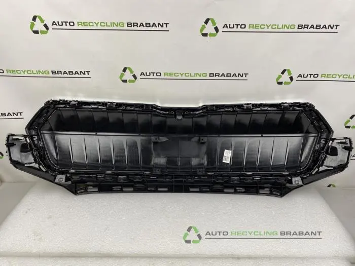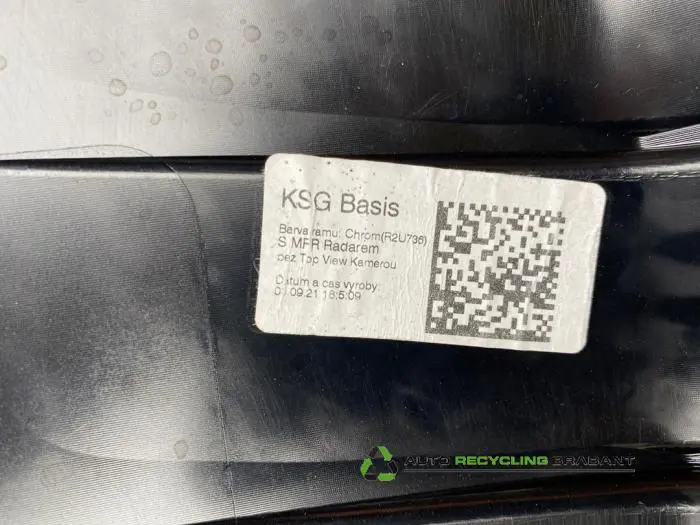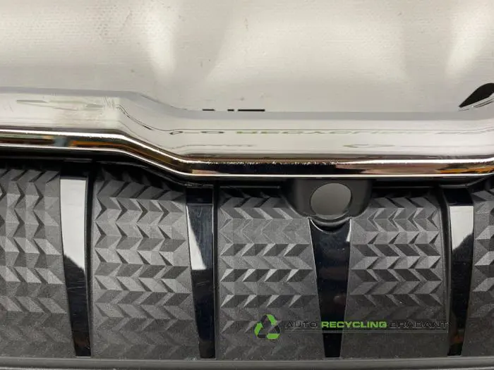 GEBRUIKTE ORIGINELE VOORBUMPER GRILL SKODA ENYAQ iV MET CAMERA VOORBEREIDING*Midden*BESCHADIGINGEN: ZIE FOTOS